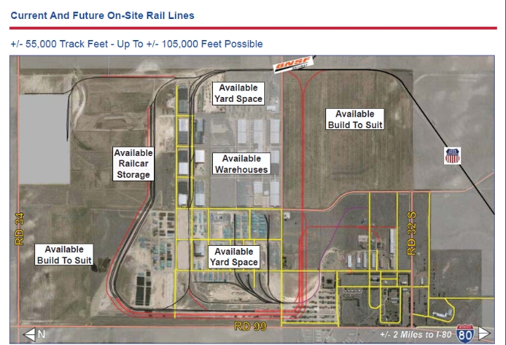 Adams园区真正实现双铁轨入园,园区现有55,000英尺铁路线,未来将扩建至105,000英尺,并预留有轨车存放处,可为入园企业提供转运、货车运输和第三方物流等现场服务。此外,园区内设有200公顷承建空间,可为企业提供定制承建服务。